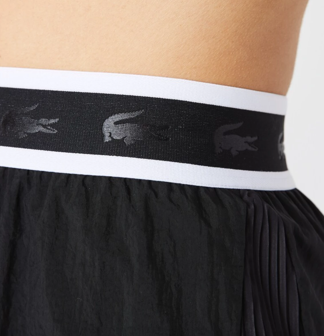 Fashion meets technical crafting in the form of this feminine pair of Lacoste Sport shorts. Crafted in lightweight recycled nylon, they are equipped with built-in compression shorties in a contrasting fabric. A striped elasticised waist and side pleats ensure a great freedom of movement. Truly essential for your next match, with well-designed accents.