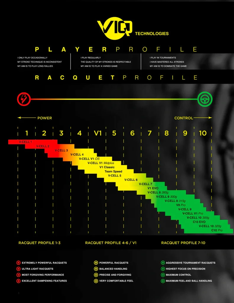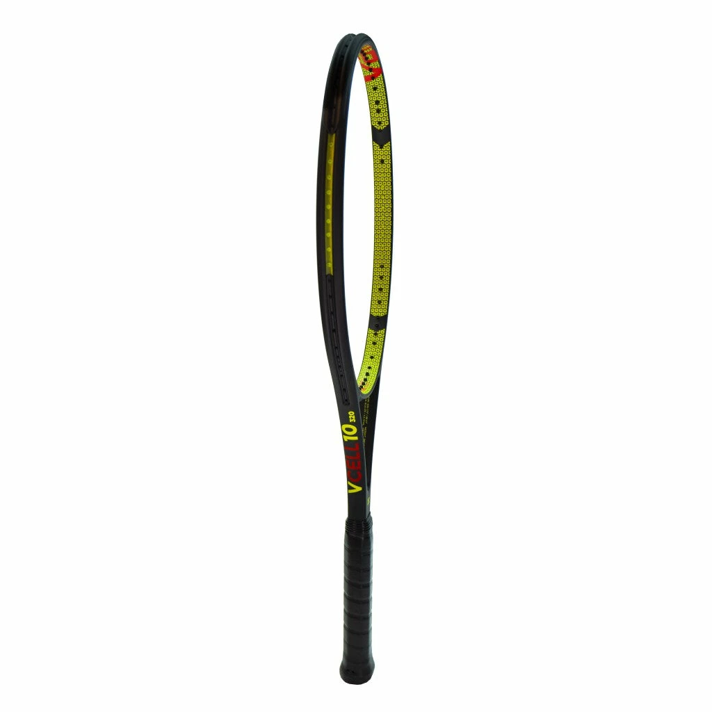 The V-Cell 10 320g is exactly what players expect in a Volkl 10 series racquet; great power from the newly designed Super Grommets with Big Grommet tech, spin potential and uncompromising control of a Volkl 10 series racquet. From blocking big serves into play and knifing a slice backhand into the corner to hitting a powerful topspin drive to push your opponent back, the V-Cell 10 320g is an extremely stable lethal weapon for strong and experienced players.*